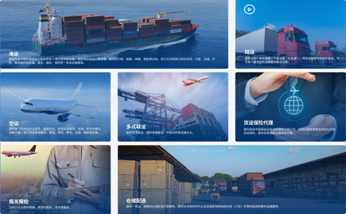 根據(jù)客戶需求提供海運(yùn)、空運(yùn)、陸運(yùn)、鐵路運(yùn)輸、多式聯(lián)運(yùn)、倉儲(chǔ)、配送、報(bào)關(guān)報(bào)檢、貨運(yùn)保險(xiǎn)代理等物流定制化、個(gè)性化解決方案。