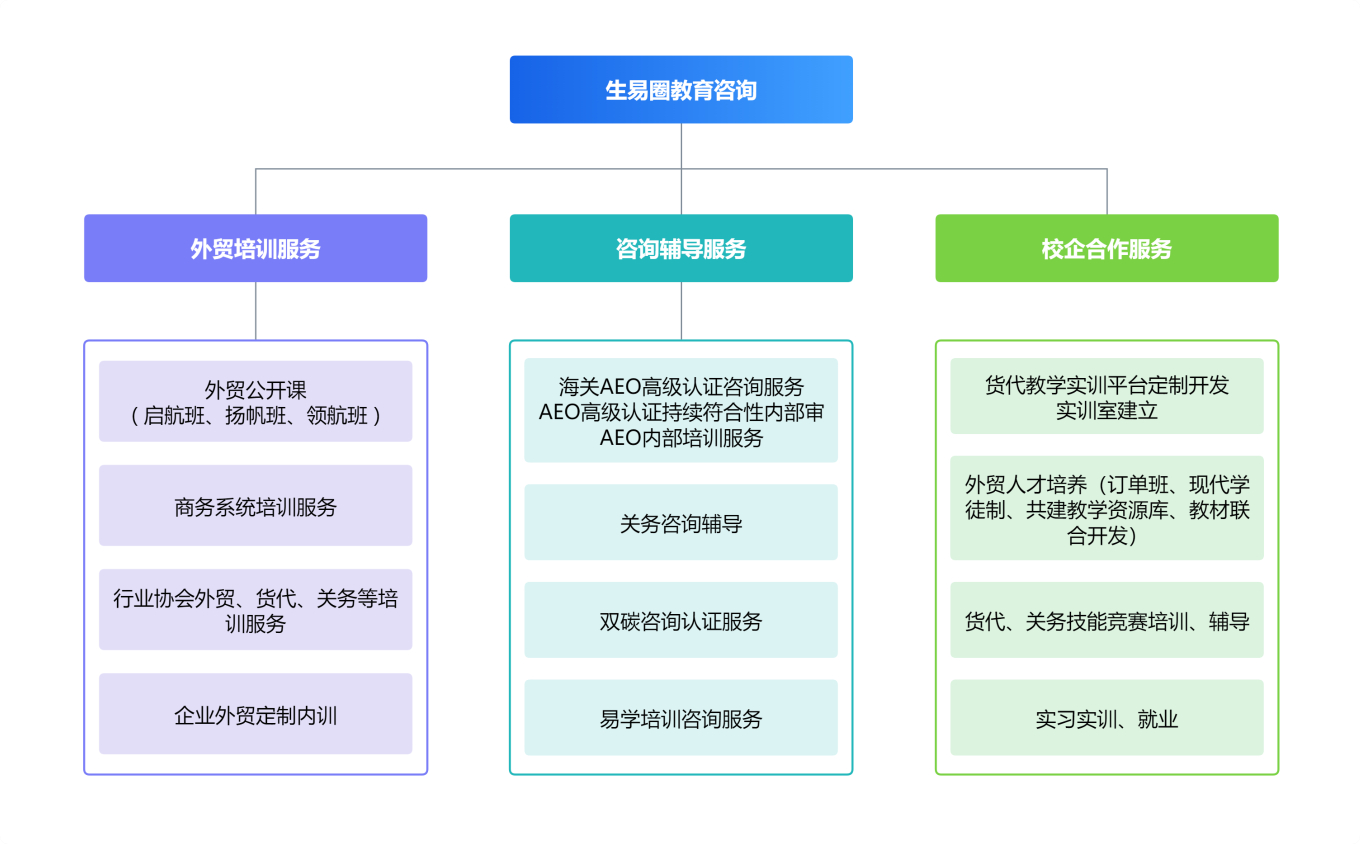 公司結(jié)合國際供應(yīng)鏈外貿(mào)綜合服務(wù)及人才優(yōu)勢(shì),立足外向型企業(yè)人才需求,成立湖南生易圈教育咨詢有限公司。